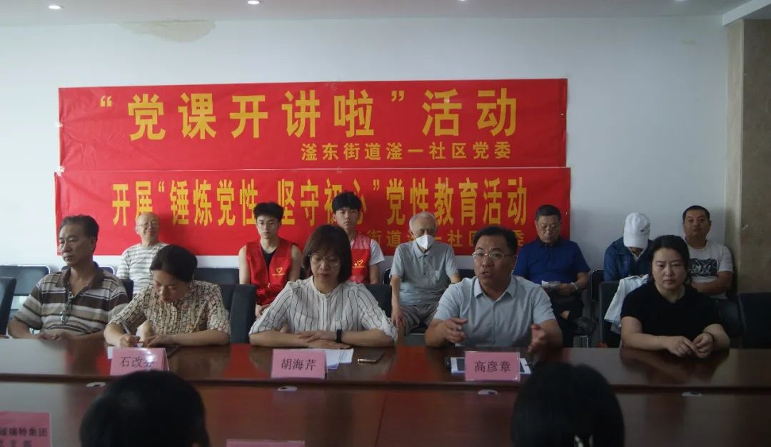 “我志愿加入中國共產黨,擁護黨的綱領,……”,滏東街道人大主任高彥章同志帶領全體黨員重溫入黨誓詞。滏東街道人大主任高彥章、黨建辦主任胡海芹先后圍繞“不忘初心,堅定黨性”、“探析黨的精神之源——傳承弘揚偉大建黨精神”為主題進行黨課講解。