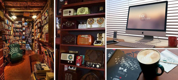 內置書籍、IMAC、各個年代的收音機、下午茶等服務,還有不會被時光侵蝕壞的依舊綠的鮮活的植物、以及記憶中爺爺拎著他的鳥籠在公園散步,聽,還有鳥的啼鳴!