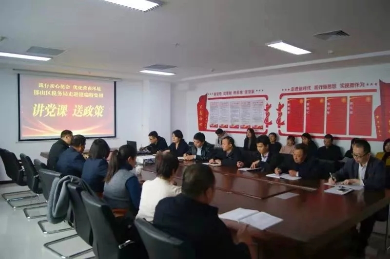 區稅務局、滏一社區和滏瑞特集團有關負責同志共同圍繞主題教育、優化營商環境等進行交流討論,共同學習政策文件,豐富和深化了主題教育活動實踐效果。
