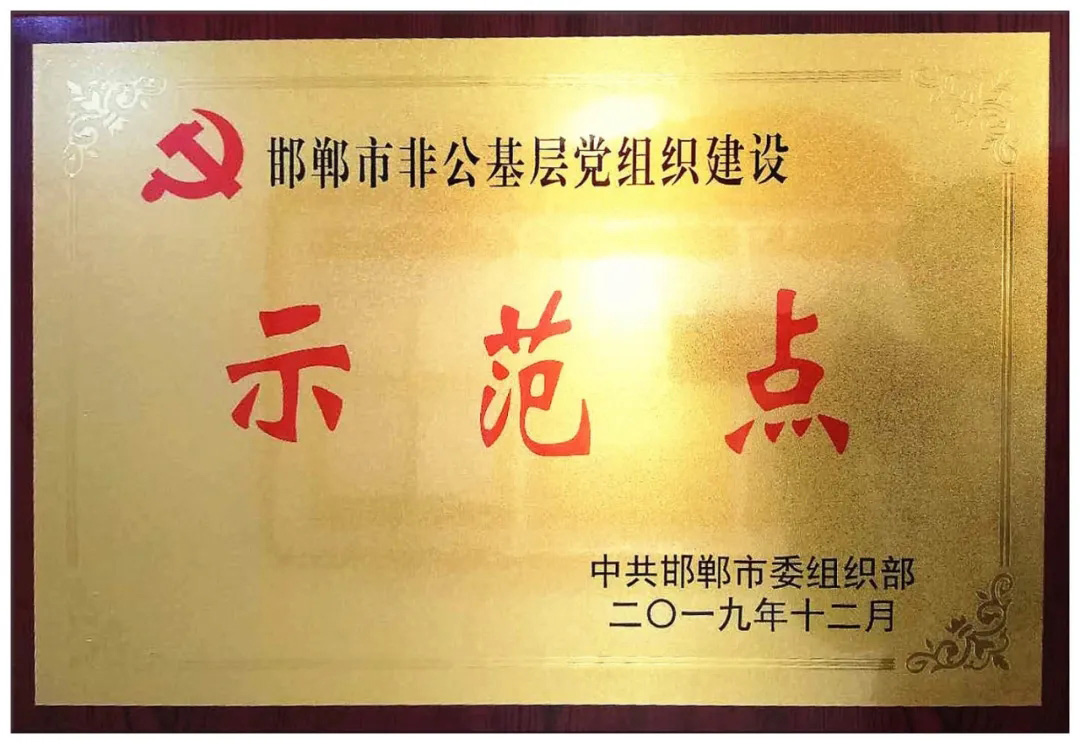 我公司黨支部榮獲邯鄲市非公企業(yè)黨組織建設(shè)示范點(diǎn)榮譽(yù)稱號(hào)。